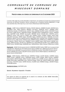 PV conseil communautaire 02 12 2025 PV conseil communautaire 02 12 2025 Les dernières actus !DéchèteriesTransports scolairesPiscine intercommunalePASS COMMUNAUTAIREInfos ordures ménagères et déchèterieUn Lieu d’Accueil Enfants Parents sur le territoire!Besoin d’aide pour vos démarches administratives et numériques du quotidien ?Calendrier de collecteLocation de vélos à assistance électriqueDécouvrez la nouvelle exposition du Musée de Mirecourt !