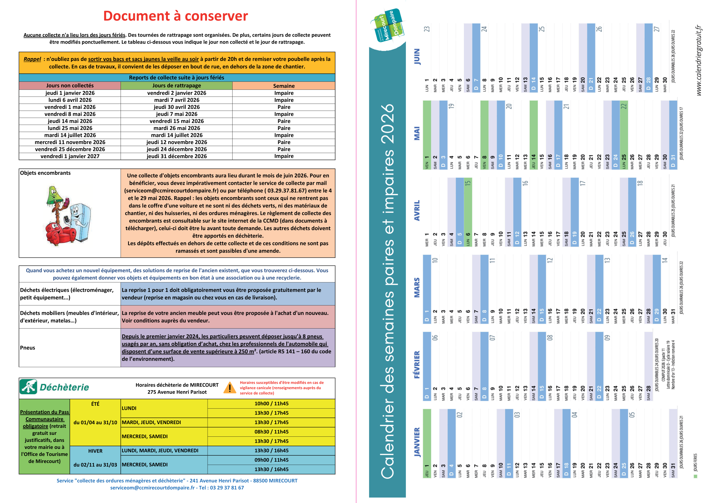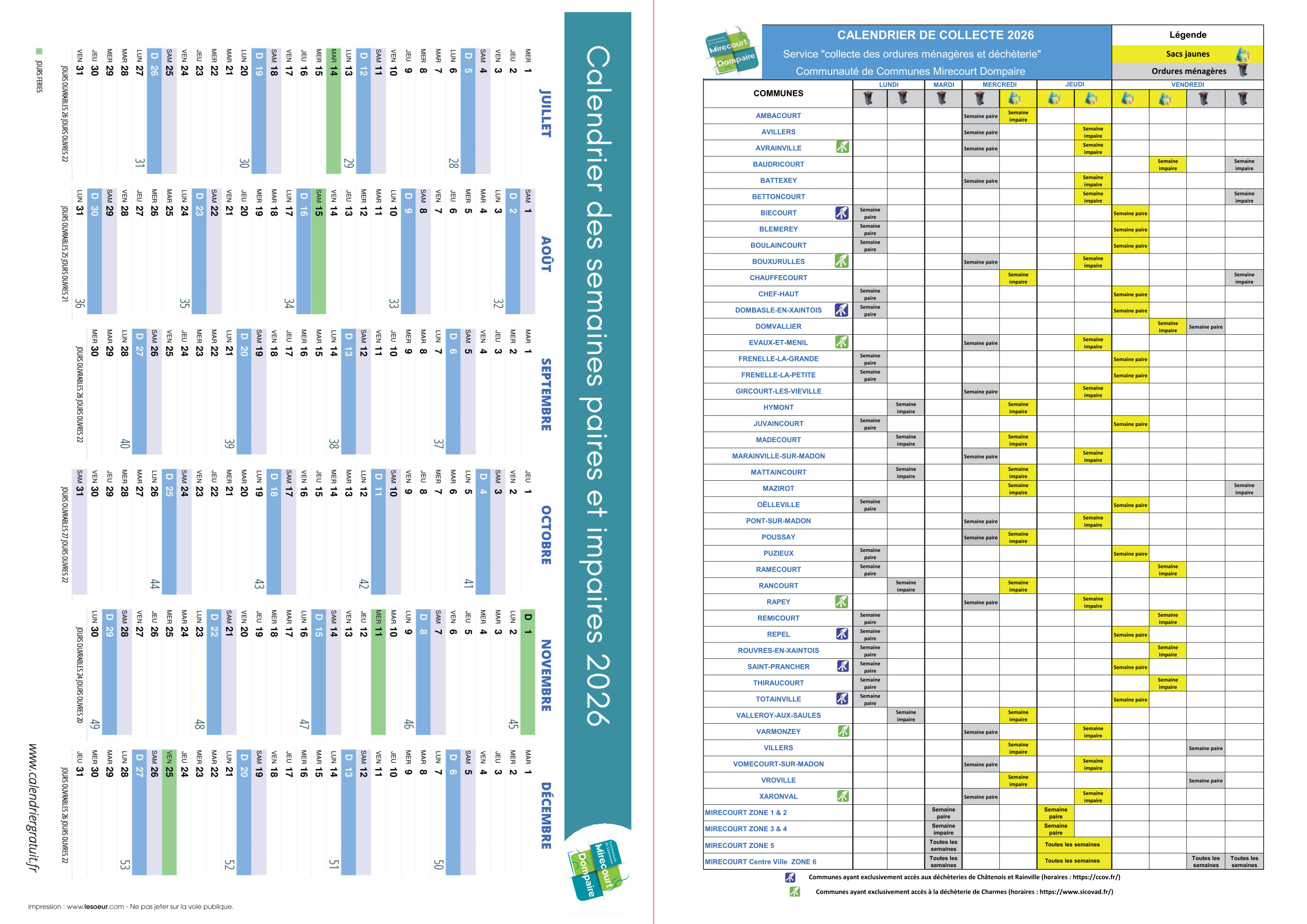 - CALENDRIER DE COLLECTE CCMD 2026 MIRECOURT