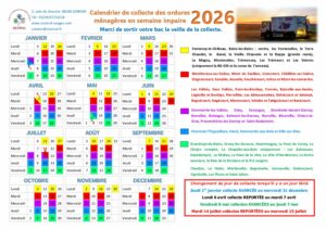 Environnement et cadre de vieCollecte des déchetsCalendrier 2026-impaire SICOTRAL Calendrier 2026-impaire SICOTRAL Les dernières actus !DéchèteriesTransports scolairesPiscine intercommunalePASS COMMUNAUTAIREInfos ordures ménagères et déchèterieUn Lieu d’Accueil Enfants Parents sur le territoire!Besoin d’aide pour vos démarches administratives et numériques du quotidien ?Calendrier de collecteLocation de vélos à assistance électriqueDécouvrez la nouvelle exposition du Musée de Mirecourt !